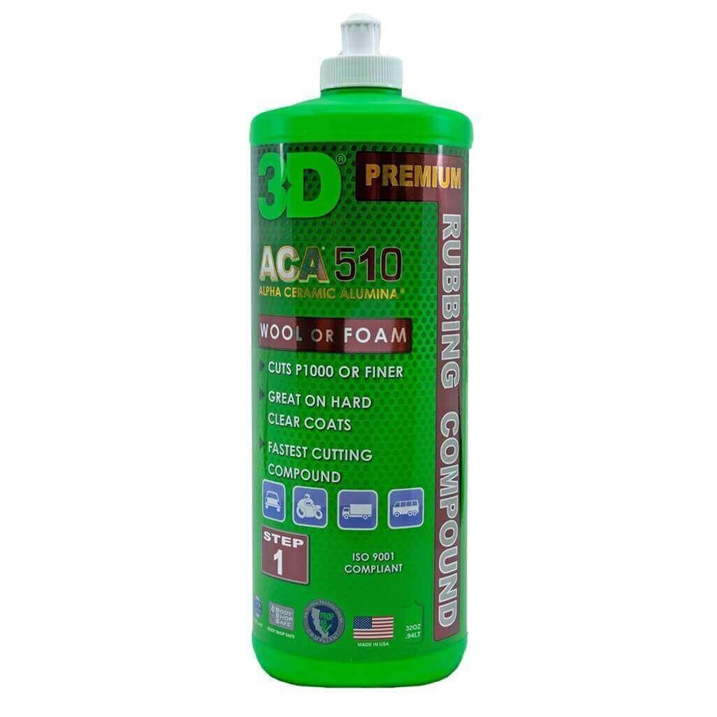 Elevate your detailing game with 3D Car Care ACA 510, a premium rubbing compound that is specifically formulated to be body shop safe. This high-performance compound efficiently removes P1500 sand scratches and finer, ensuring a flawless finish without compromising safety. ACA 510 utilizes Alpha Ceramic Alumina technology for true paint correction.