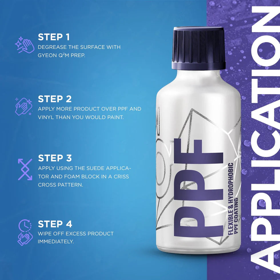 Unique ceramic coating for Paint Protection Film. Q² PPF EVO is an easy-to-apply, flexible one-layer coating for all types of PPF and vinyl. It is designed to extend self-cleaning and maximise the hydrophobic properties of any automotive film while remaining highly durable.