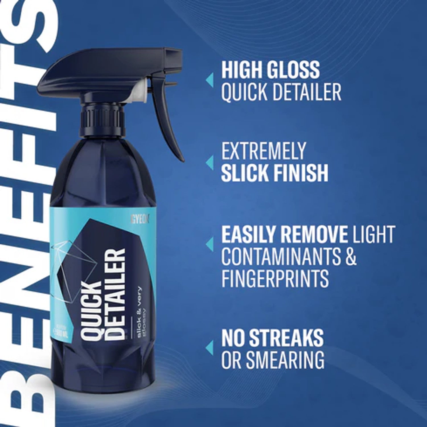 Q²M Quick Detailer is the easiest product of its kind, making it a child’s play to wipe off even when it dries out on the surface. It may be used both on dry and wet paint as it unfolds its potential as a drying aid. The product is a class on its own when it comes to the slickness of the surface. Its versatile character allows the use on all exterior surfaces.
