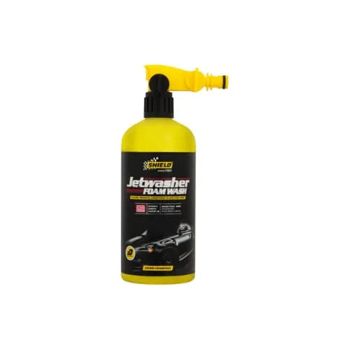 The phrase "shield yellow jetwash a car cleaning product. It's a car shampoo that creates a dense foam to remove dirt and grime, and is safe for all vehicle surfaces including paint. The "yellow" likely refers to the color of the product packaging or the foam itself.